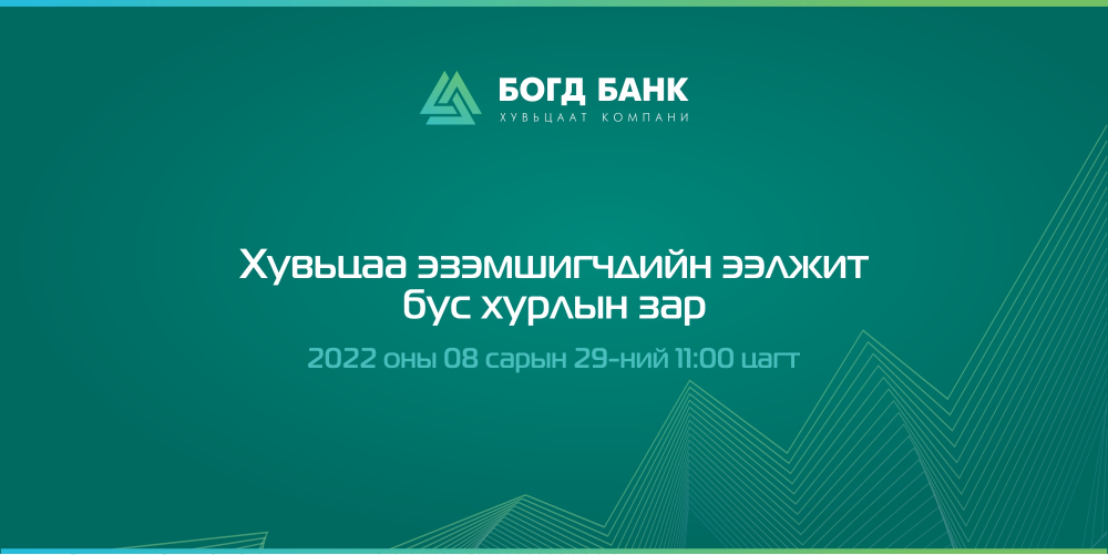 - “Богд Банк” ХК-ийн байранд ирж хурал зохион байгуулах комиссын гишүүн Т.Уянга-д /утас: 99051320/ мэдэгдэн хурлын баримт бичигтэй танилцах боломжтой.
