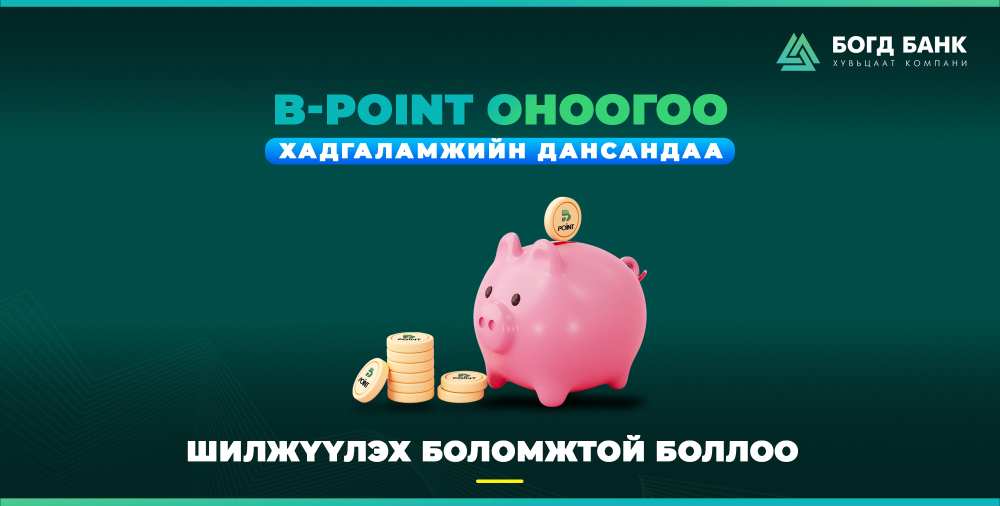 B POINT ОНООГОО ХАДГАЛАМЖЫН ДАНСАНДАА ШИЛЖҮҮЛЭХ БОЛОМЖТОЙ БОЛЛОО.