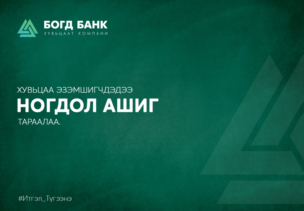 “БОГД БАНК” ХК ХАГАС ЖИЛИЙН ЦЭВЭР АШГААС ХУВЬЦАА ЭЗЭМШИГЧДЭДЭЭ НОГДОЛ АШГАА ТАРААЛАА.